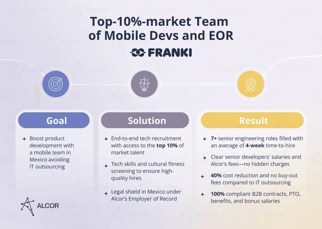Do you know who else is already in the Latin American tech market? The US-based experience app Franki. By choosing to nearshore their development processes to Mexico, the company partnered with Alcor and received: