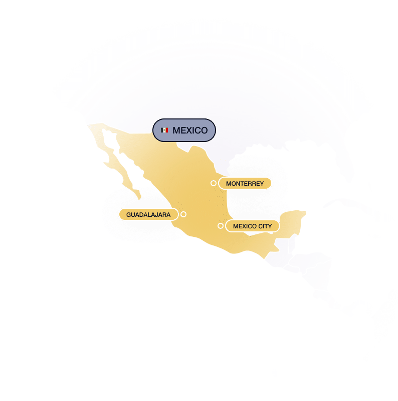The IT market in Mexico is thriving with 400 tech businesses, 450 startups, and 4 bustling hubs in Mexico City, Monterrey, Guadalajara, and Mérida.